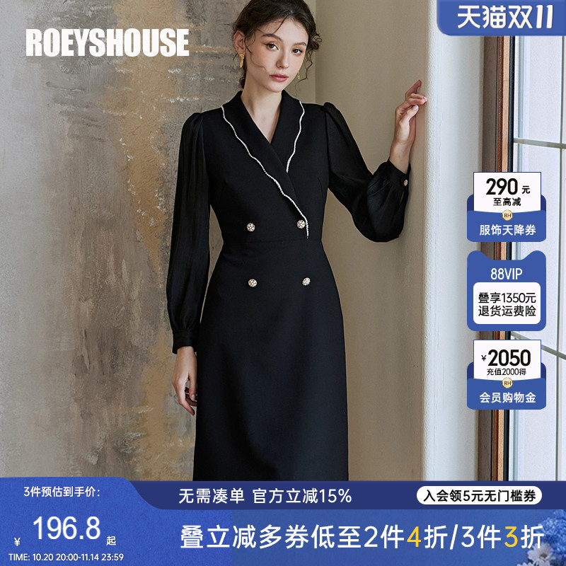 水云间黑色西装领连衣裙女七分袖v领收腰a字裙子优雅ol风2025秋款