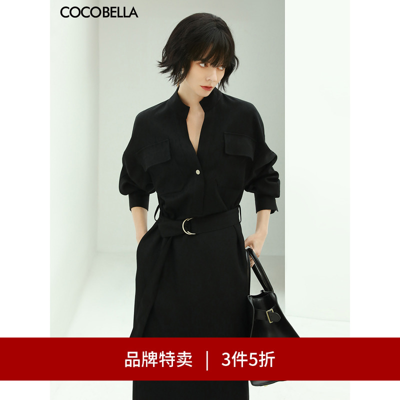 【3件5折】COCOBELLA赫本风气质立领黑色连衣裙OL优雅衬衫裙FR147