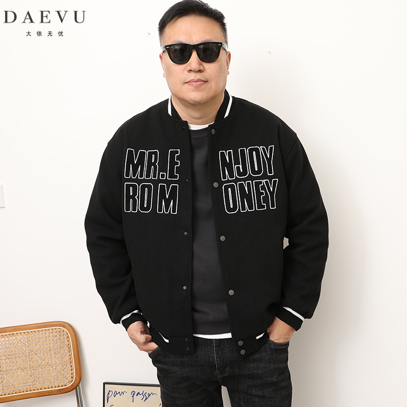 DAEVU冬新款拼接潮胖子加肥加大码男士棒球领短款薄棉衣外套夹克