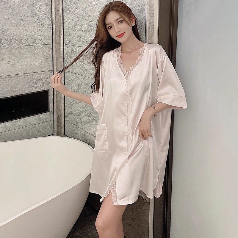 日本小众gp真丝白衬衫睡裙女薄款纯欲高级感性感睡衣春秋款女可外