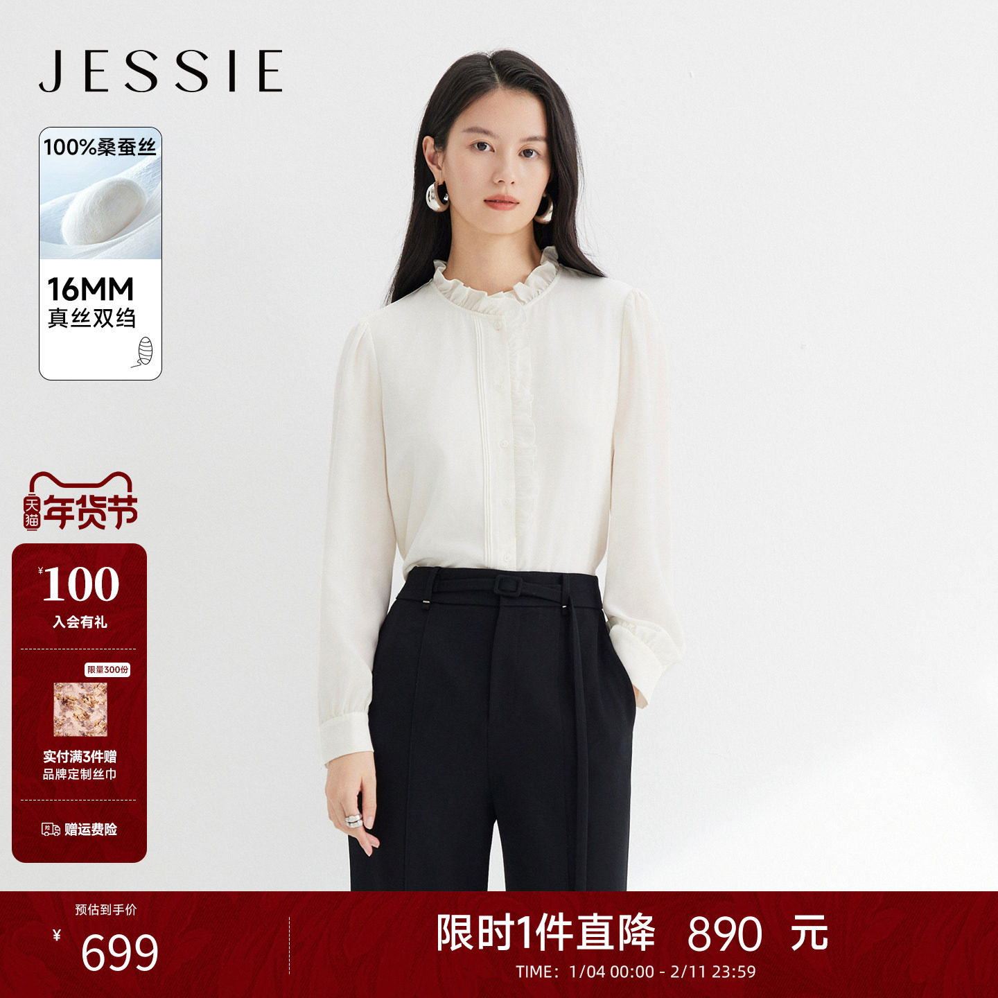 【100%桑蚕丝】JESSIE优雅真丝木耳边衬衫女通勤白色衬衣26春新款