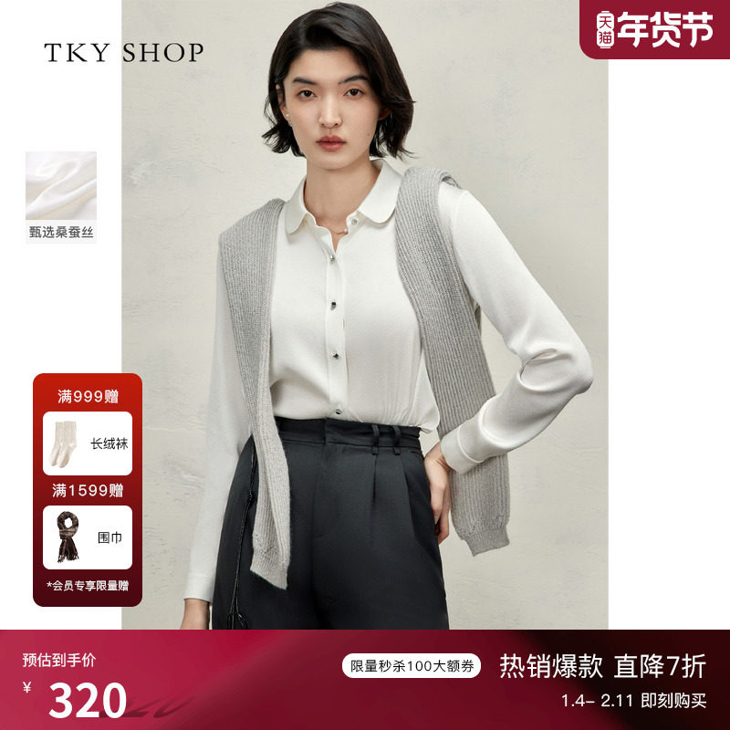 TKY SHOP简约白色真丝衬衫女2025春新款高级感奢贵桑蚕丝衬衣通勤