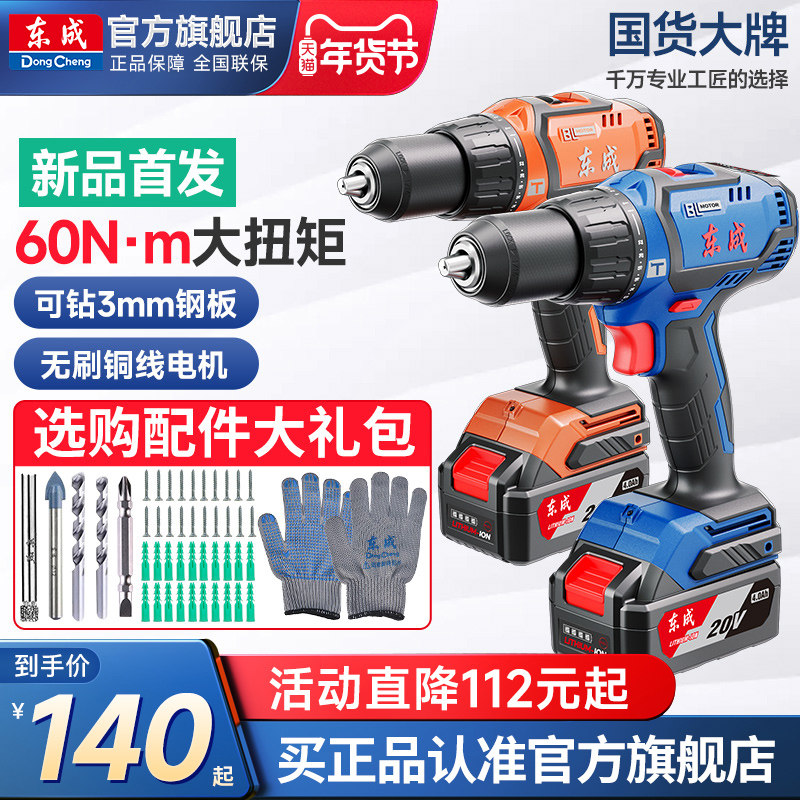 东成冲击钻锂无刷电钻充电式手电钻120N家用20V电动螺丝刀冲击钻