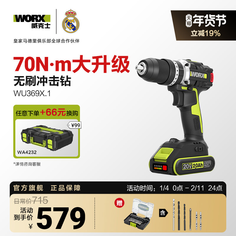 威克士冲击钻手电钻锂电池WU369X多功能家用电动螺丝刀充电手钻