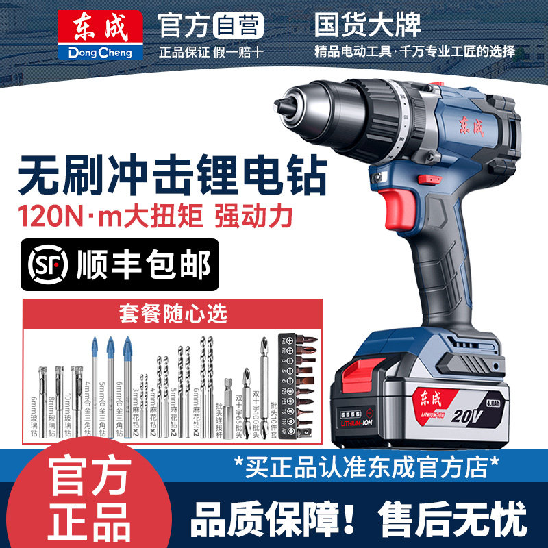 东成无刷电钻锂电冲击钻20V充电式电动手钻东城大扭力螺丝刀2050A