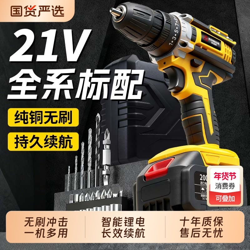 日本大亿无刷手电钻锂电双速冲击充电钻家用多功能电动螺丝刀钻孔