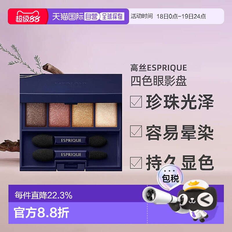 日潮跑腿高丝Esprique四色眼影盘003#5g深蓝盒正品