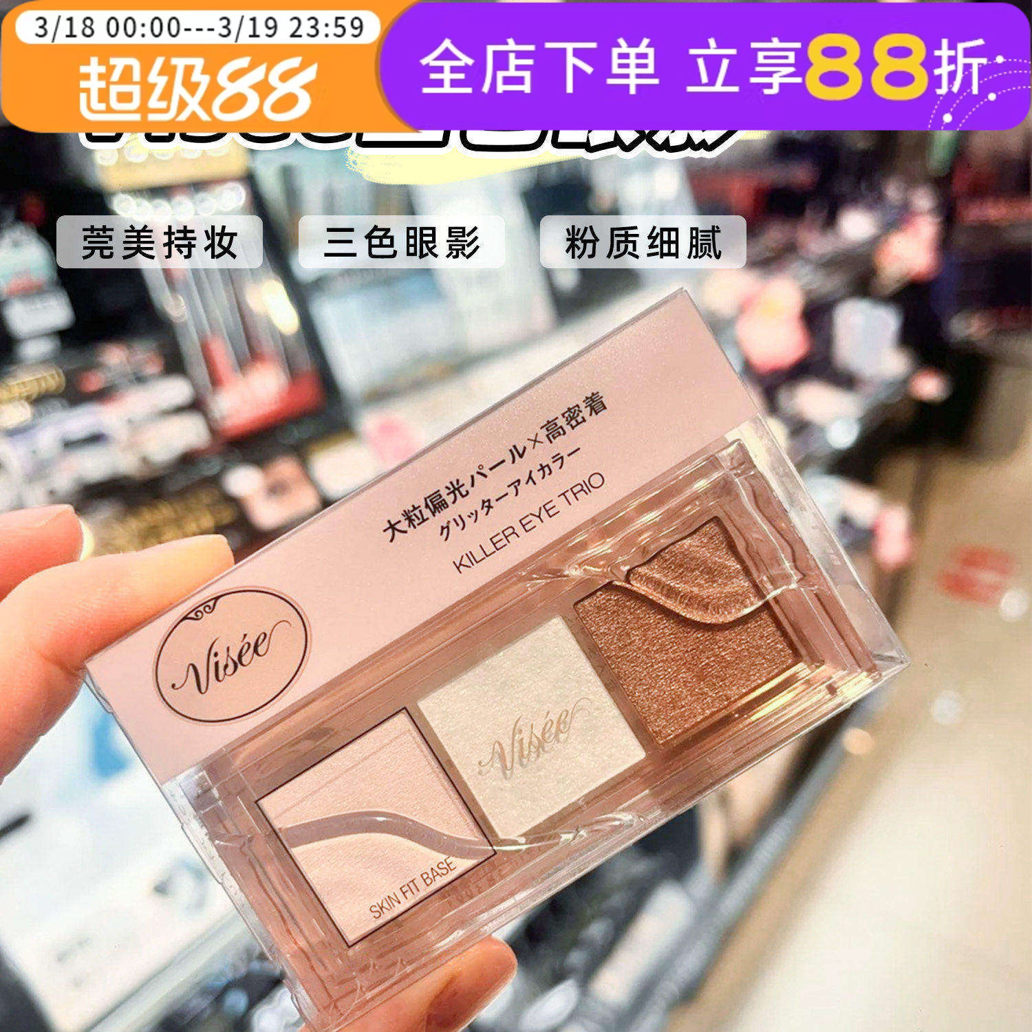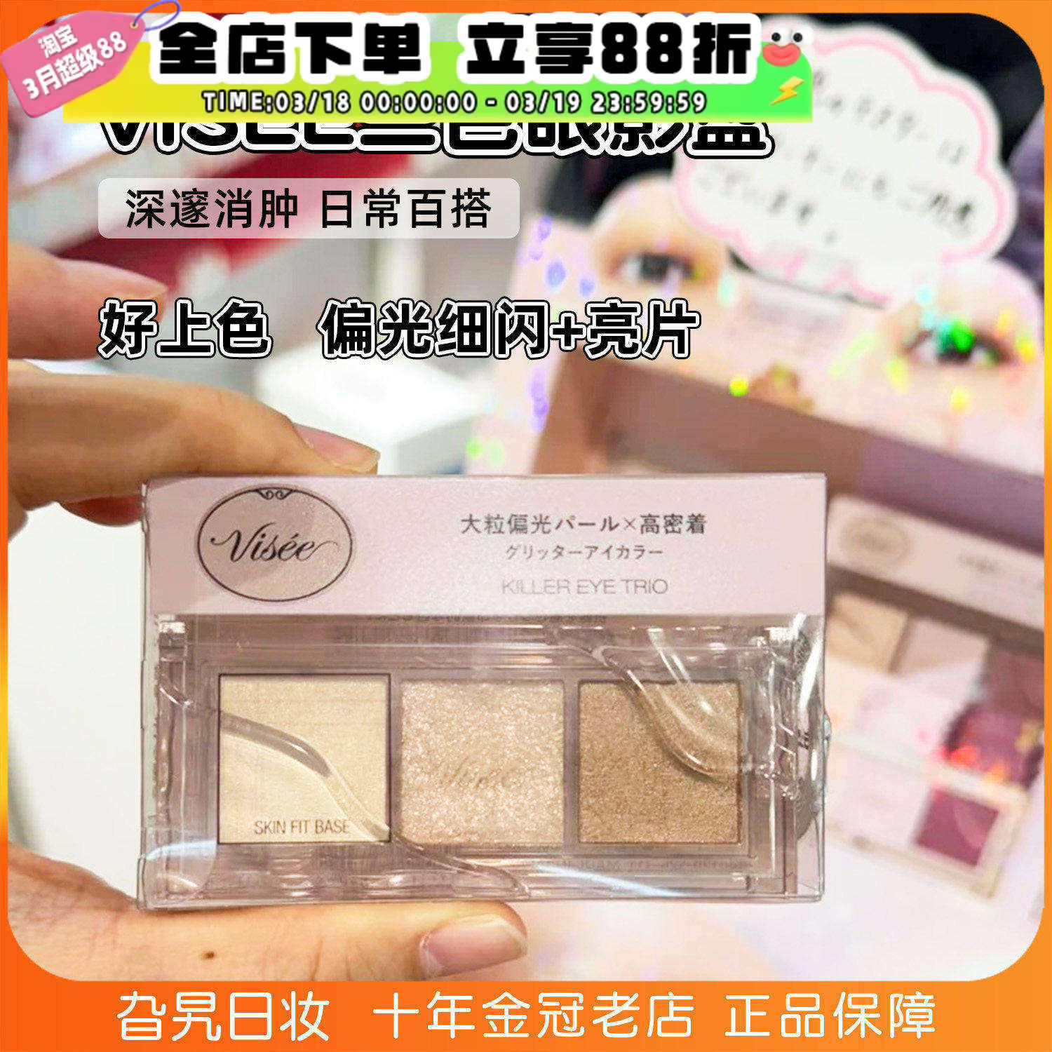 日本KOSE高丝VISEE三色眼影新品大地色日系亮片珠光爆闪日常出门