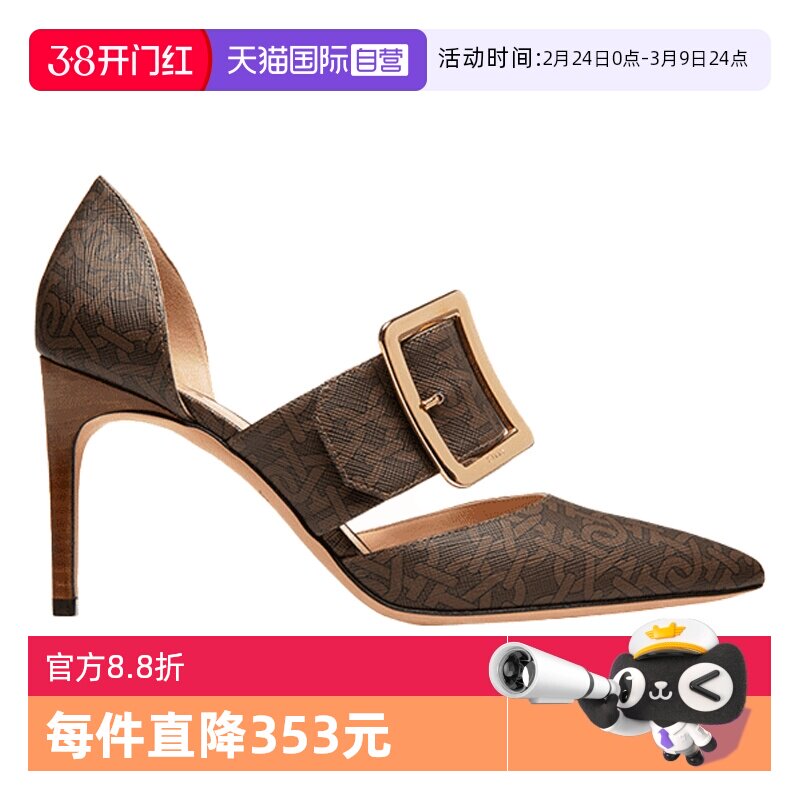 【自营】Bally/巴利时尚女士复古棕色老花Eco皮气质美拉德中跟鞋