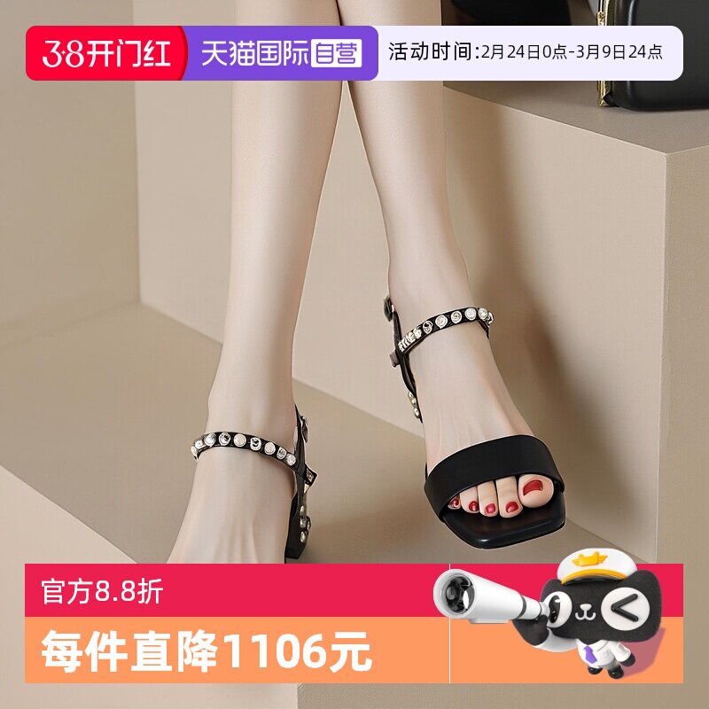 Fermina 2025新款法式轻复古露趾凉鞋女中跟鞋搭扣后空女鞋通勤风
