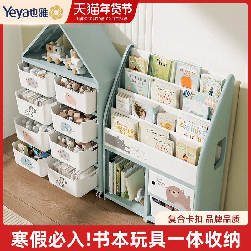 也雅儿童书架玩具收纳架置物架绘本架一体宝宝落地书柜收纳柜箱盒