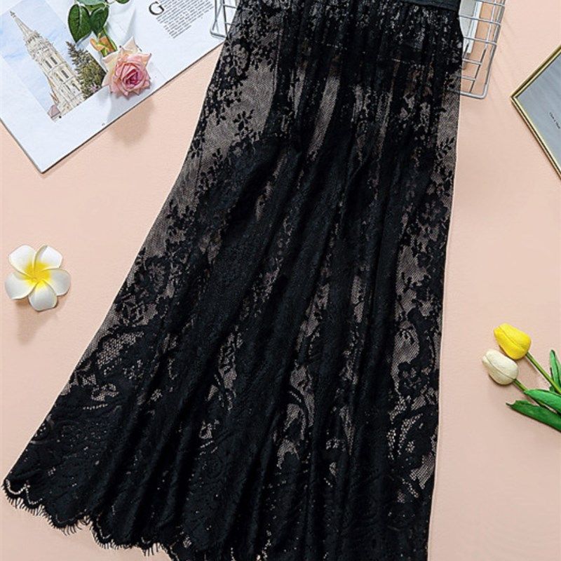 2024新款蕾丝裙半身裙女春秋夏a字高腰网纱百搭中长款打底裙子潮