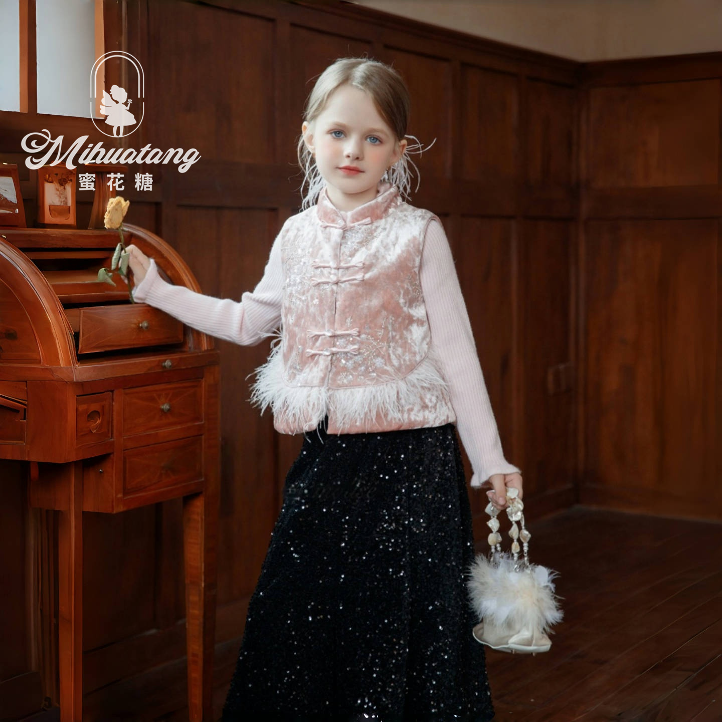 高端女童冬装新款连衣裙套装儿童小香风仿皮草毛毛外套背心裙套裙