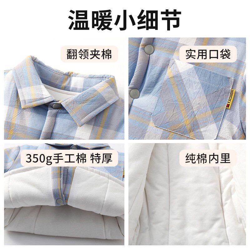 宝宝手工棉衣男童棉裤儿童棉衣内胆加厚棉服外出棉服格子组合套装