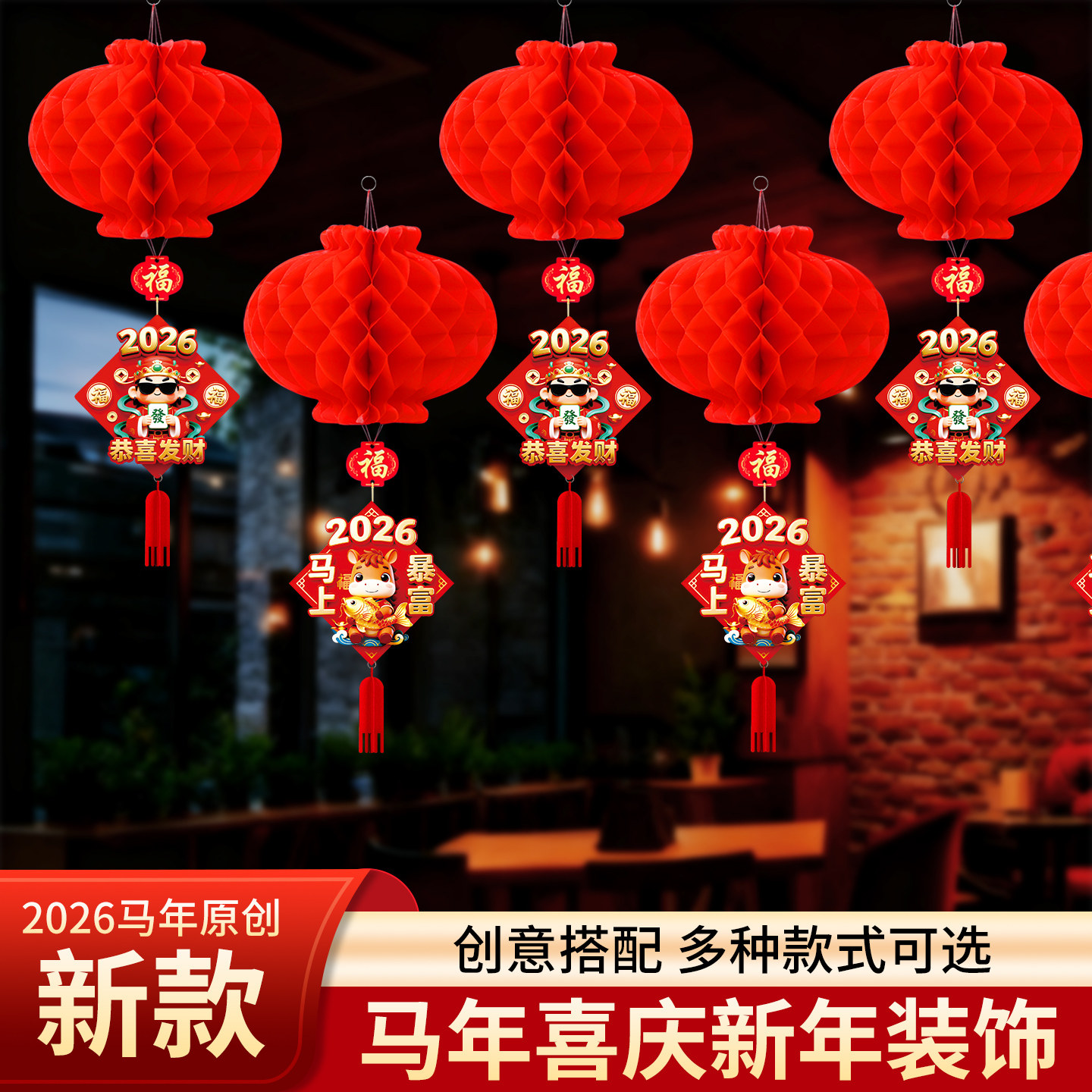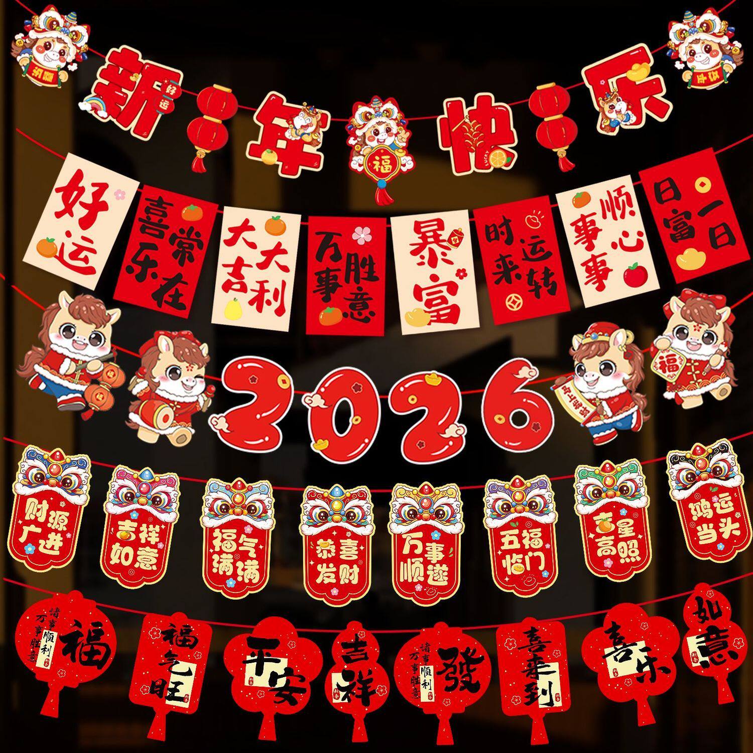 新年装饰品2026马年拉旗拉花春节过年挂件超市店铺幼儿园挂饰吊饰