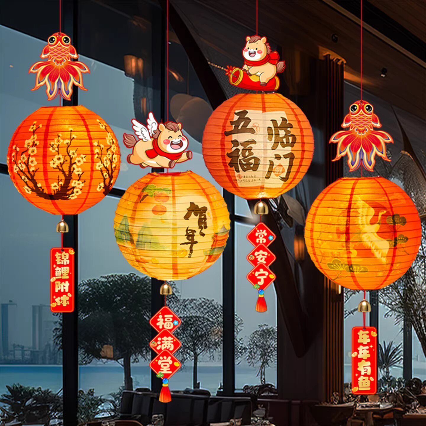 新年装饰福字挂饰2026马年春节幼儿园教室班级灯笼串氛围布置吊饰