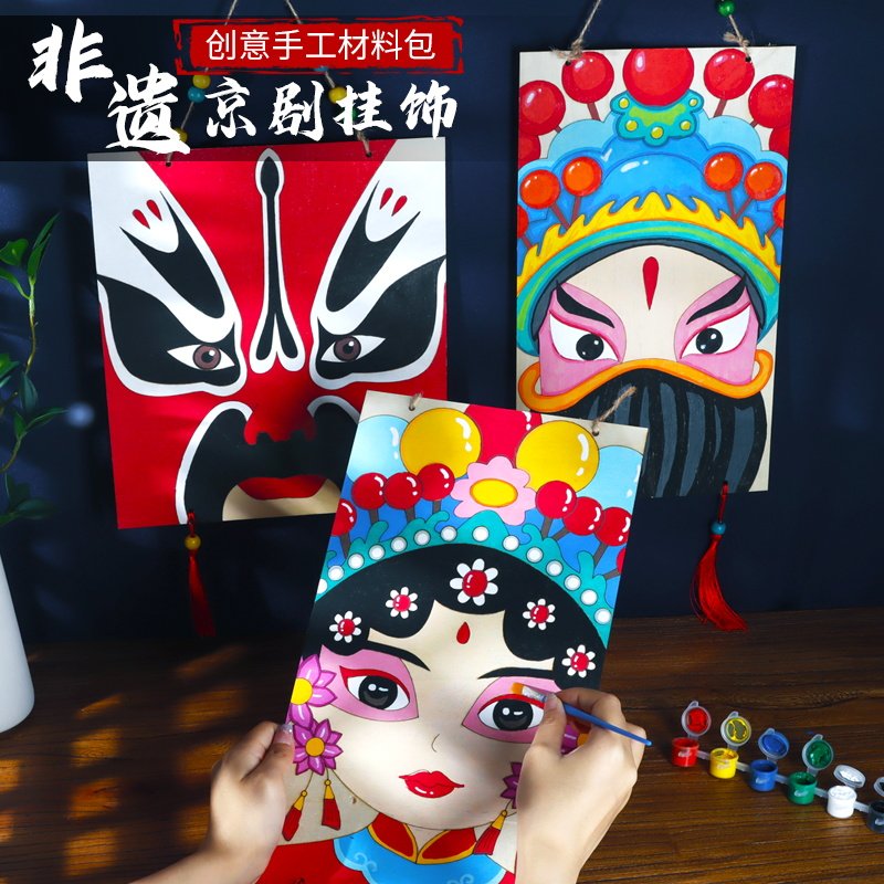 中国风京剧脸谱挂饰diy手工涂色绘画吊饰木质制品幼儿园教室装饰