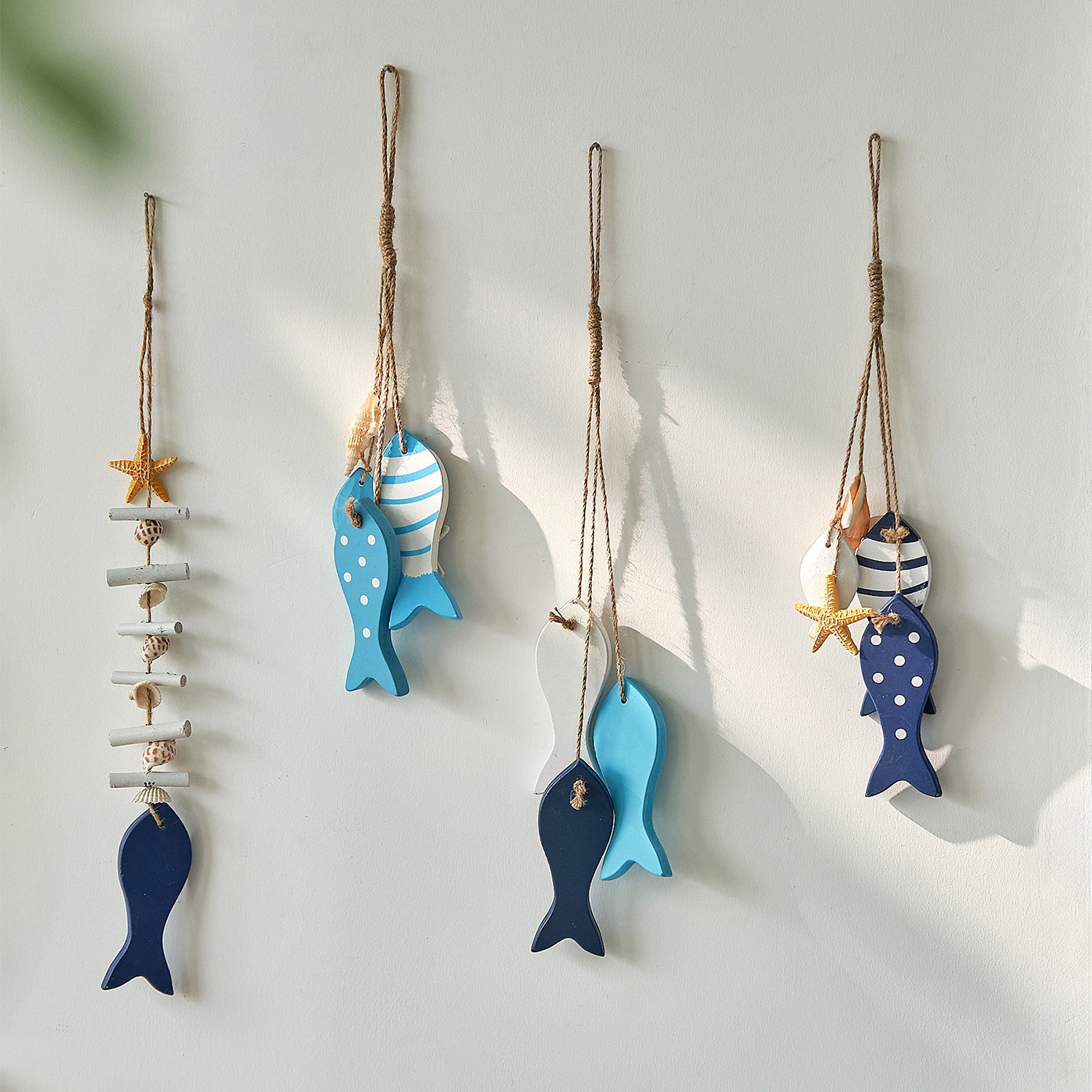 海洋工艺品航海挂饰船锚贝壳吊饰木质幼儿园DIY家居装饰饰品摆件
