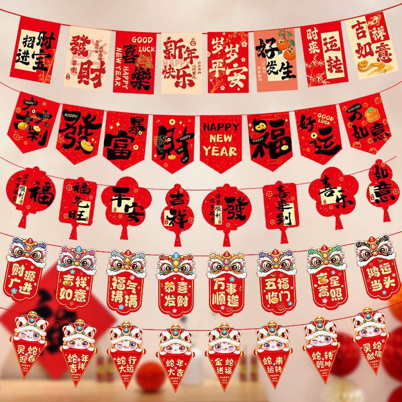 2026年新款春节新年装饰拉旗挂饰商场珠宝店幼儿园场景布置吊饰旗