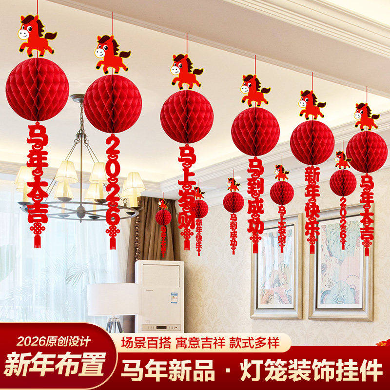 2026元旦新年装饰品马年拉花挂件春节过年场景布置幼儿园吊饰挂饰
