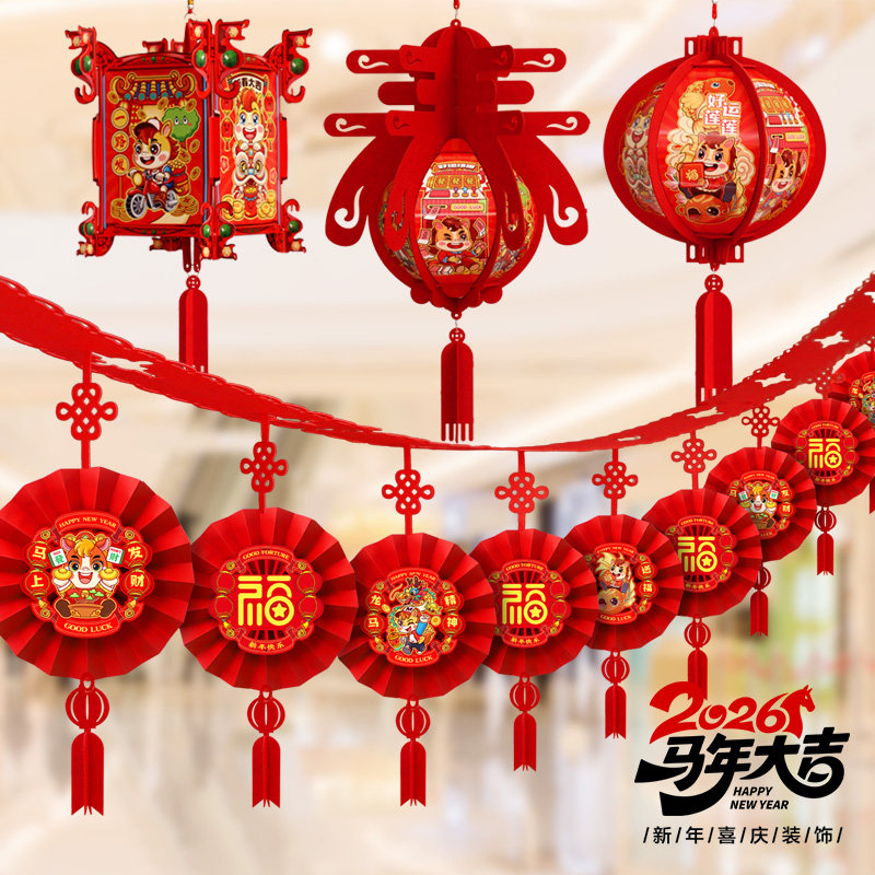 2026马年新年拉花挂饰春节吊饰挂件商场幼儿园教室过年布置装饰品