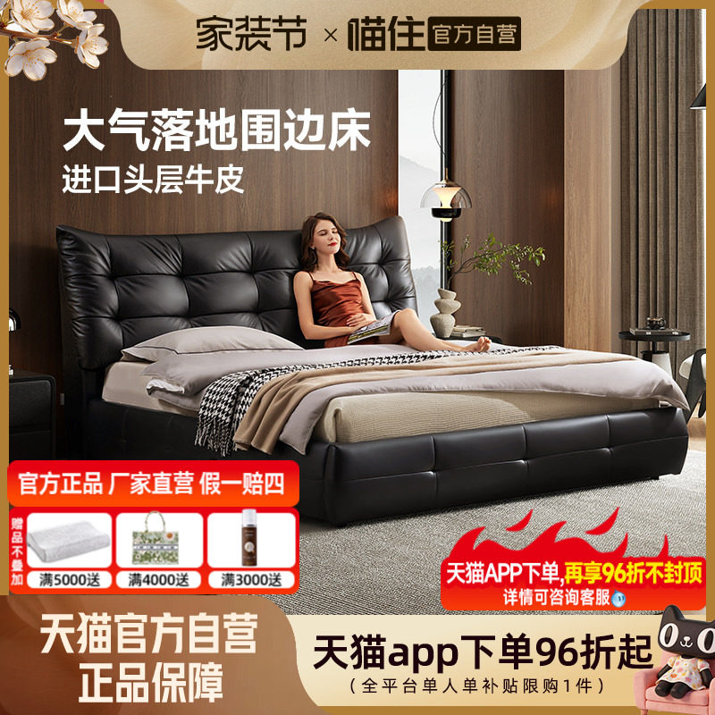 芝华仕真皮床大黑牛简约大气围边主卧双人大床卧室芝华士家具C621