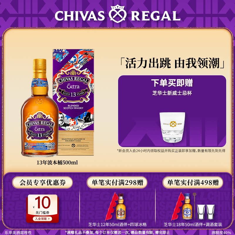【百补】芝华士领潮风味系列13年波本桶500ml威士忌进口洋酒