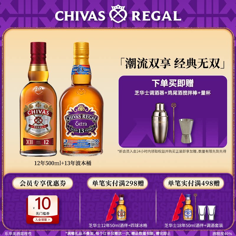 chivas芝华士威士忌12年500ml+13年波本桶组合洋酒苏格兰调酒基酒