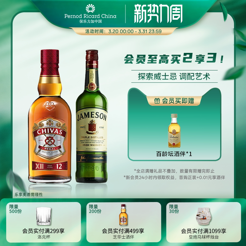 Chivas/芝华士+JAMESON/尊美醇威士忌500ml*2进口洋酒特调