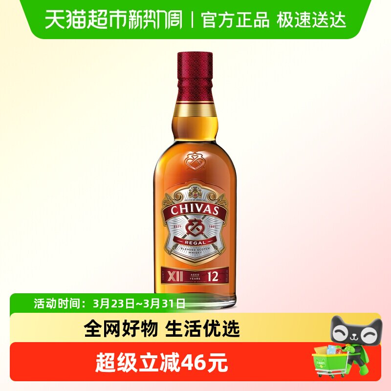 【百亿补贴】芝华士12年特醇威士忌英国进口洋酒调酒烈酒500ml