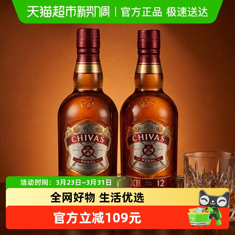 chivas芝华士12年威士忌英国苏格兰500ml*2瓶进口洋酒调酒