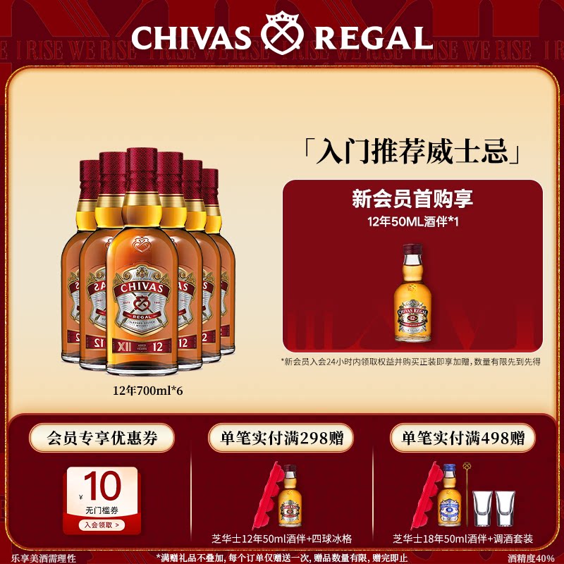 【官方旗舰】芝华士12年700ml*6苏格兰威士忌套装进口洋酒调酒