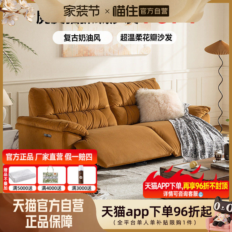 芝华仕头等舱电动沙发小户型复古风猫抓布花瓣沙发芝华士30619