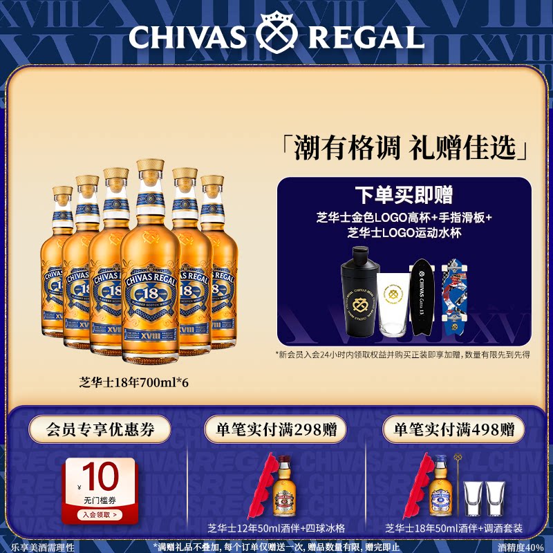 【官方旗舰】芝华士18年700ml*6苏格兰威士忌英国进口洋酒调酒