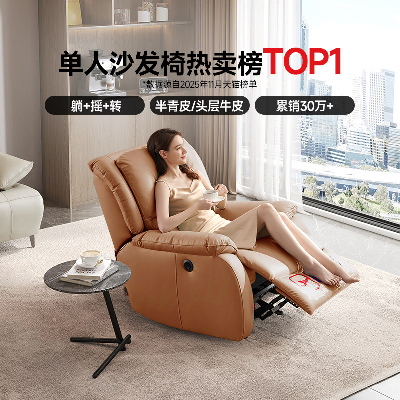 芝华仕头等舱单人真皮懒人沙发可摇可转休闲功能单椅芝华士K1232