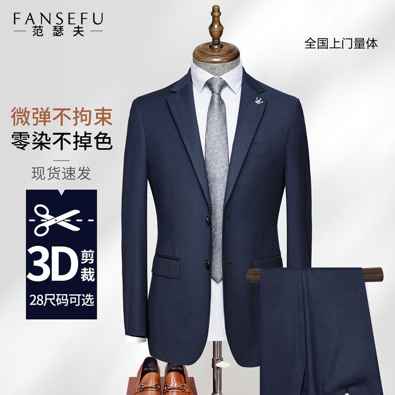 时尚商务西服套装男高级修身帅气两件装高档婚宴礼服潮流职业外套
