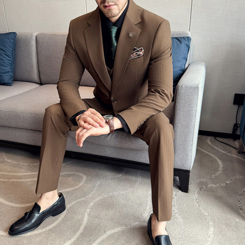 工艺免烫抗皱高档暗条纹西服男商务职业套装新郎结婚礼服三件套潮