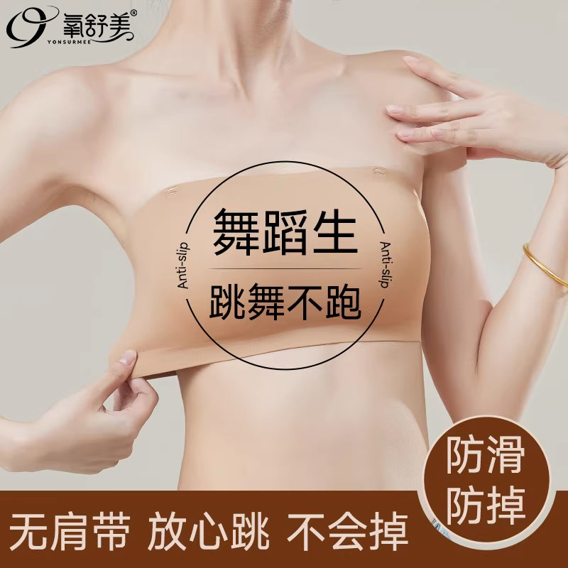舞蹈生专用内衣少女粉底液防透无痕无肩带抹胸防滑内搭一片式文胸