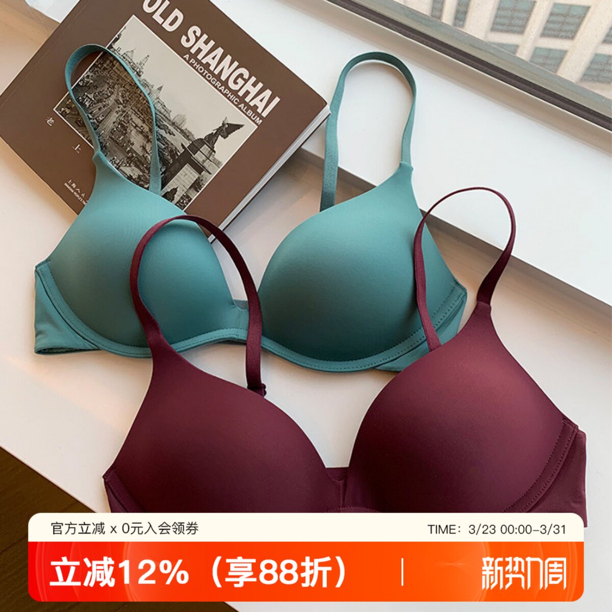 云朵无痕内衣女小胸聚拢薄款一片式舒适防下垂无钢圈固定杯文胸罩