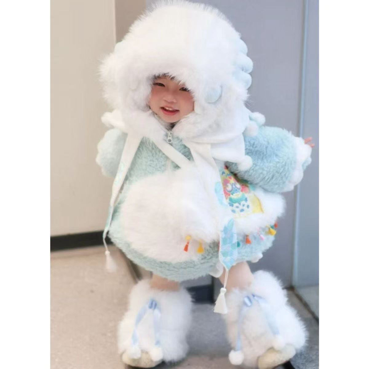 女童毛绒外套2025新款儿童洋气仿皮草大衣宝宝冬装加厚可爱小恐龙