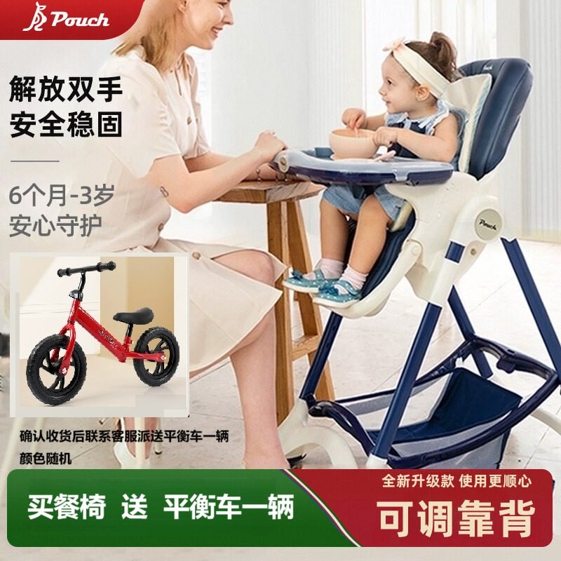 Pouch宝宝餐椅多功能婴儿可折叠便携式家用座椅儿童吃饭餐桌坐椅