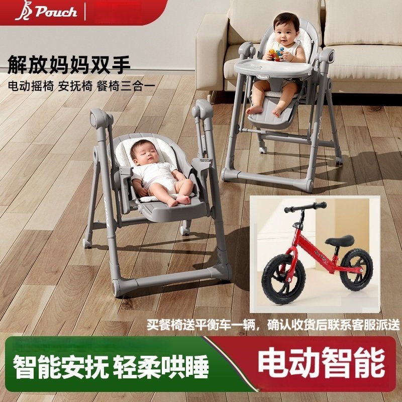 Pouch宝宝餐椅多功能婴儿吃饭电动摇椅可折叠餐桌椅 K06