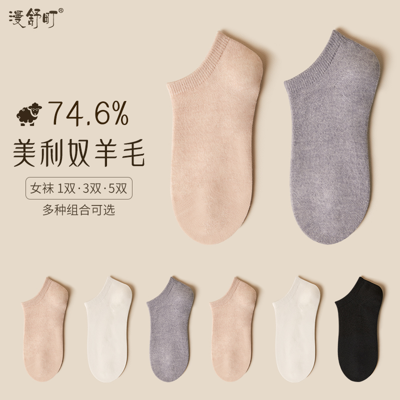 女袜子春秋款短筒抗菌防臭吸汗浅口短袜秋冬低帮纯色美利奴羊毛袜