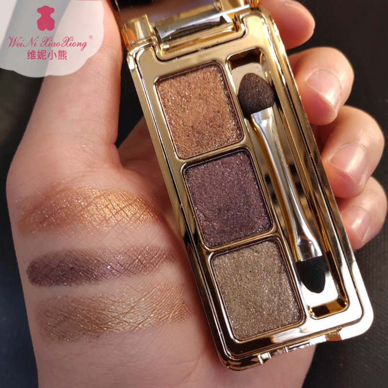 维妮小熊三色一亮到底o钻石眼影盘珠光细闪提亮哑光大地色学生便