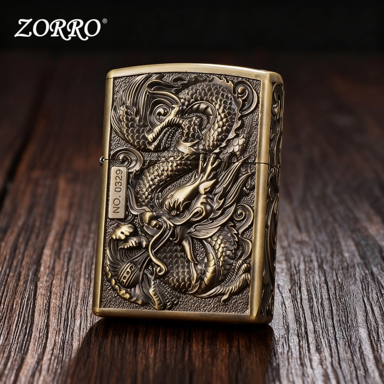 ZORRO佐罗盔甲煤油打火机复古防风老式砂轮创意浮雕龙凤男士礼品