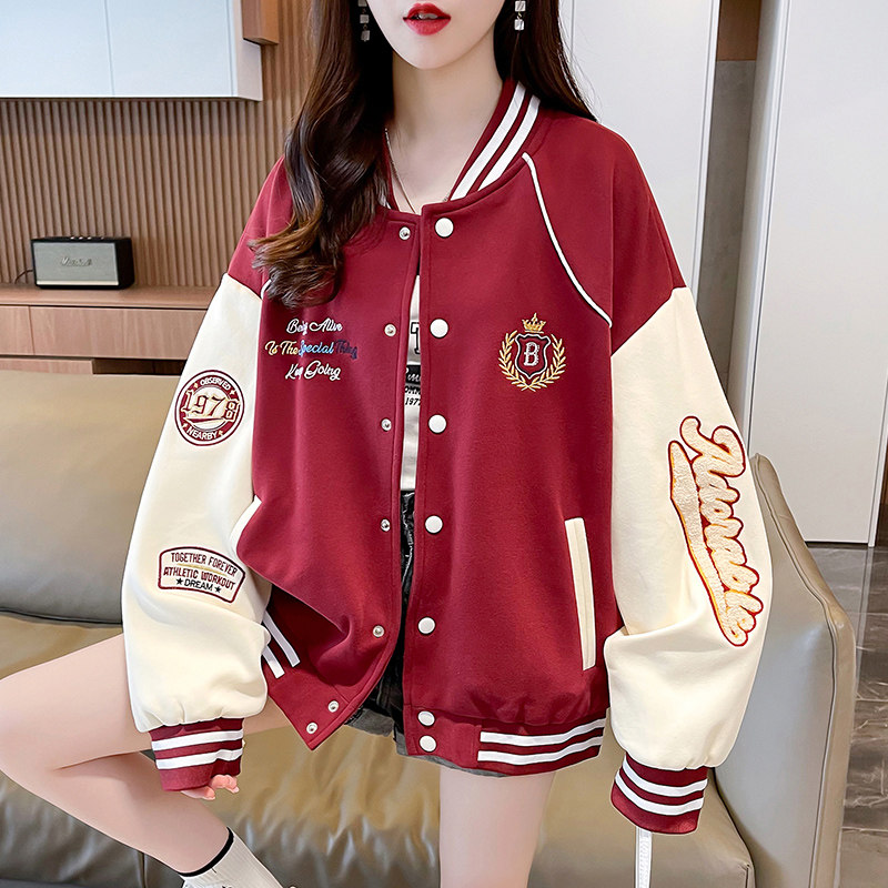 2023秋冬新款美式棒球服复古拼接小众外套女宽松百搭韩版学生潮牌