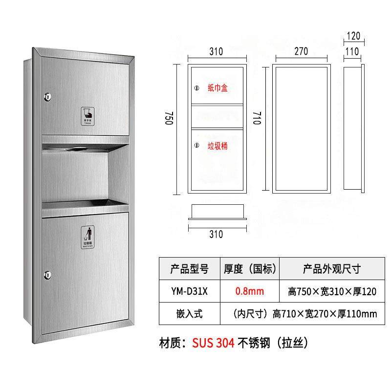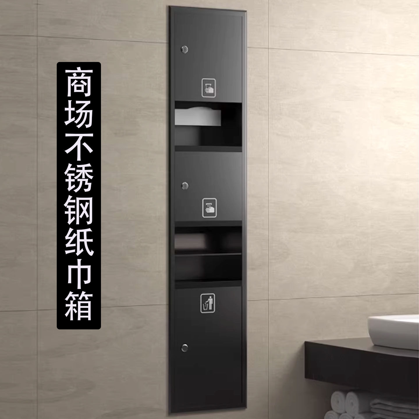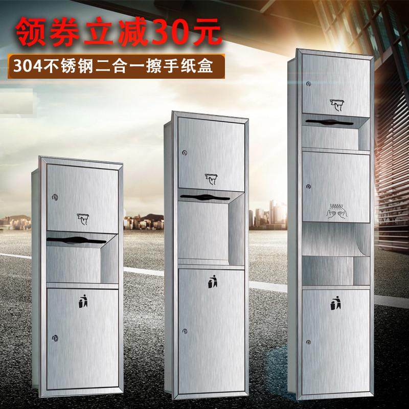 不锈钢三合一擦手纸盒卫生间嵌入式垃圾桶抽纸盒纸巾架壁龛一体机