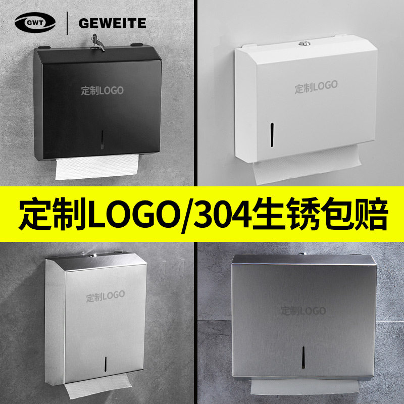 304不锈钢擦手纸盒卫生间抽纸架厕所酒店壁挂式商用纸巾盒免打孔