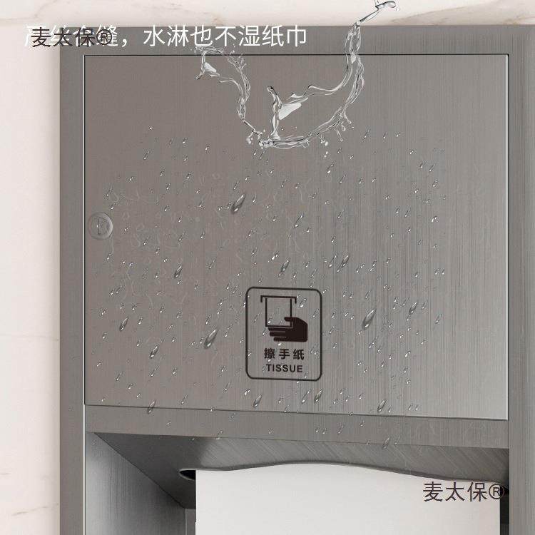 锈一钢三合一擦手纸盒卫生间抽入架箱嵌式带垃圾纸桶704烘手器麦