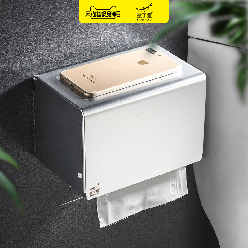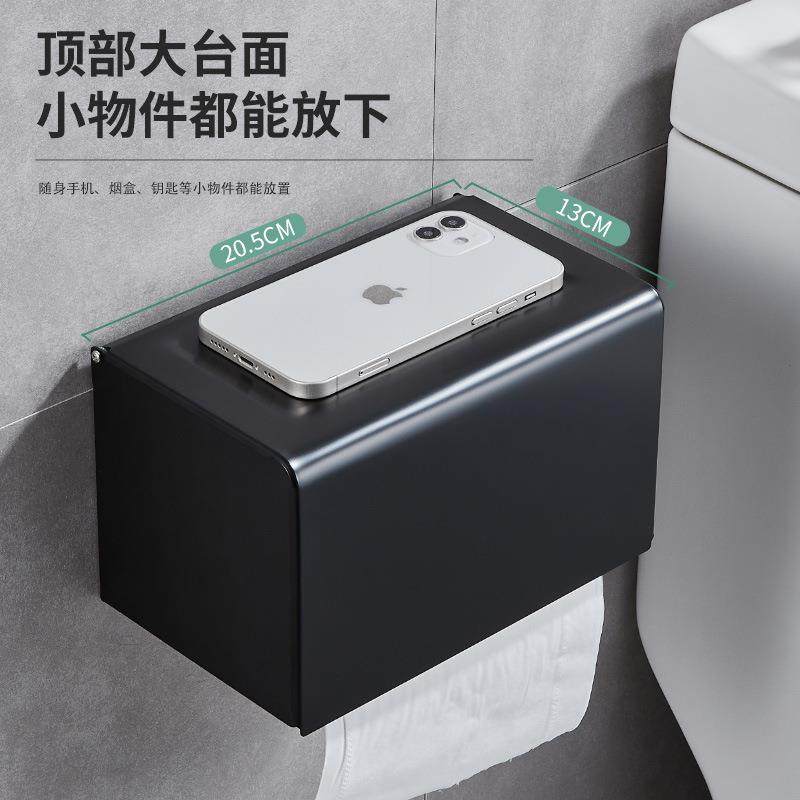 卷纸架太空铝厕所防水浴室黑色免打孔擦手纸盒卫生间壁挂式纸巾盒